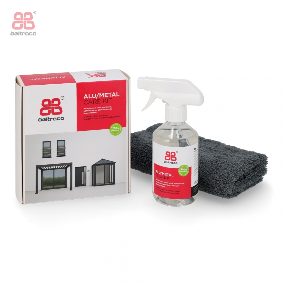 Reinigingsset voor het effectief reinigen en onderhouden van gebruiksvoorwerpen van aluminium-, poedercoat- en geanodiseerde oppervlakken. Verwijdert zeer goed vuil dat is ontstaan door gebruik, vet en vingerafdrukken. Verandert de glansgraad niet.